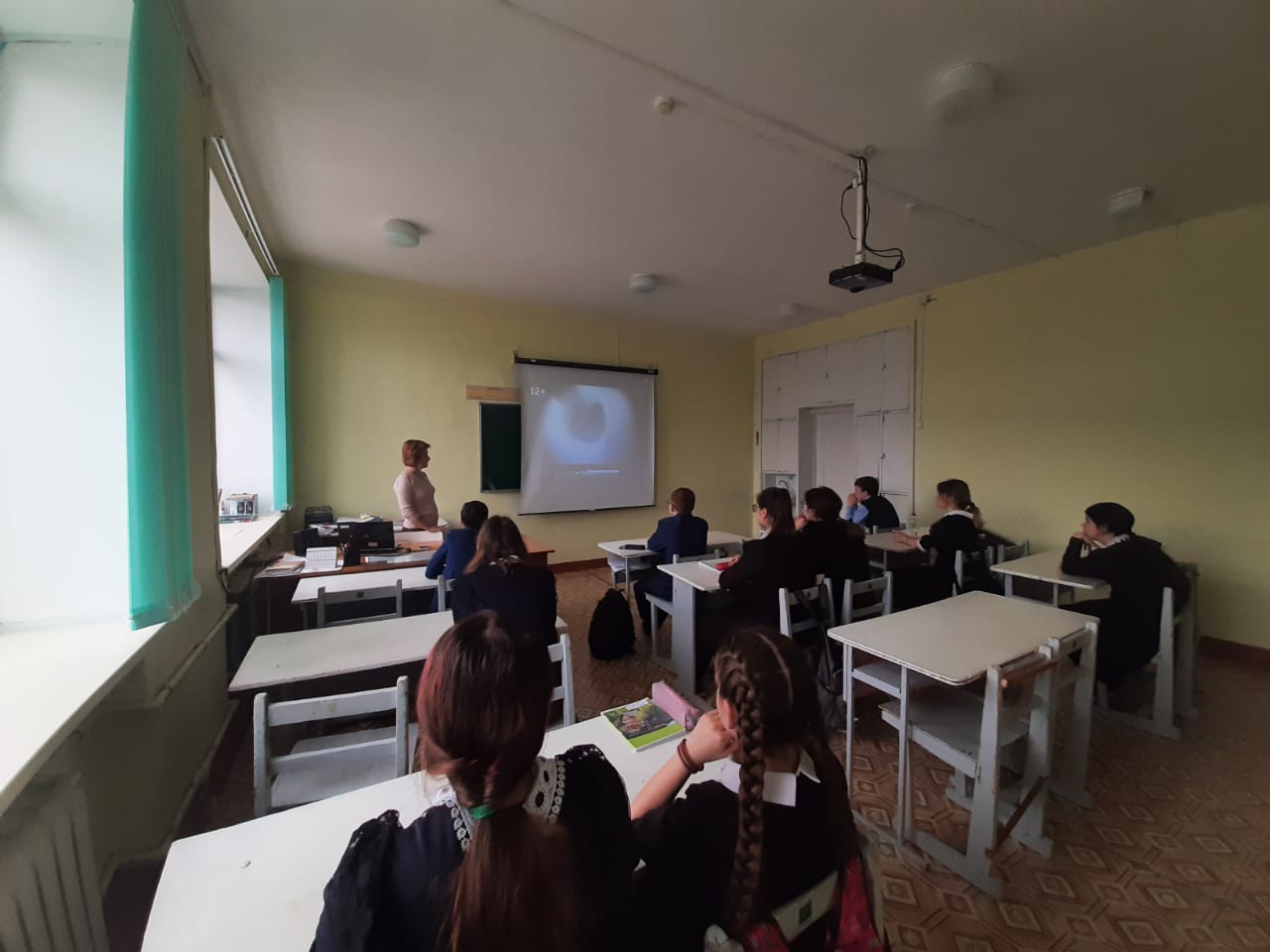 Бүген педагоглар һәм физика укытучысы Г.Г. Вәлиева белән әңгәмәләрдә балалар бу бәйрәмнең килеп чыгу тарихы, Космос киңлеген яулап алган кеше - Юрий Гагарин, беренче хатын-кыз космонавт Валентина Терешкова, дүрт аяклы дусларыбызның йолдызларга юл салулары, зур һәм кечкенә планеталар, аларның үзлекләре турында белделәр. Фойеда укучыларның иҗади эшләре: «Мин космос рәсемен ясыйм» дигән балалар рәсемнәре һәм «Космос балалар күзлегеннән»дигән кул эшләнмәләре күргәзмәсе оештырылды. Укучылар видеороликлар, документаль фильмнар карадылар.», "Косста Старт», «Эра".