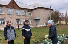 Сегодня на пришкольном участке учащиеся 8 класса убрали капусту. Несмотря на засушливое лето получили хороший урожай капусты.