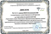Команда школы награждена Дипломом за демонстрацию лучшей образовательной практики на I ОБРАЗОВАТЕЛЬНОМ ФОРУМЕ в г.Агрыз.