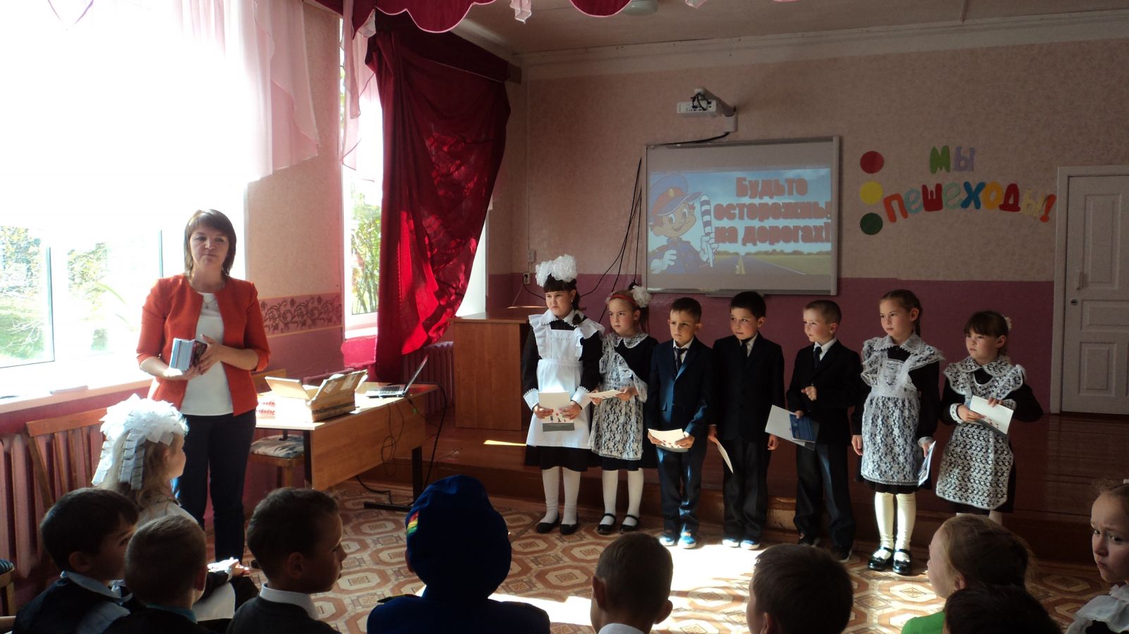 Главной целью мероприятия являлось расширение представлений учащихся 1-х классов о правилах поведения на дороге, значении дорожных знаков и сигналов светофора, развитие наблюдательности и внимания, воспитание культурного пешехода.