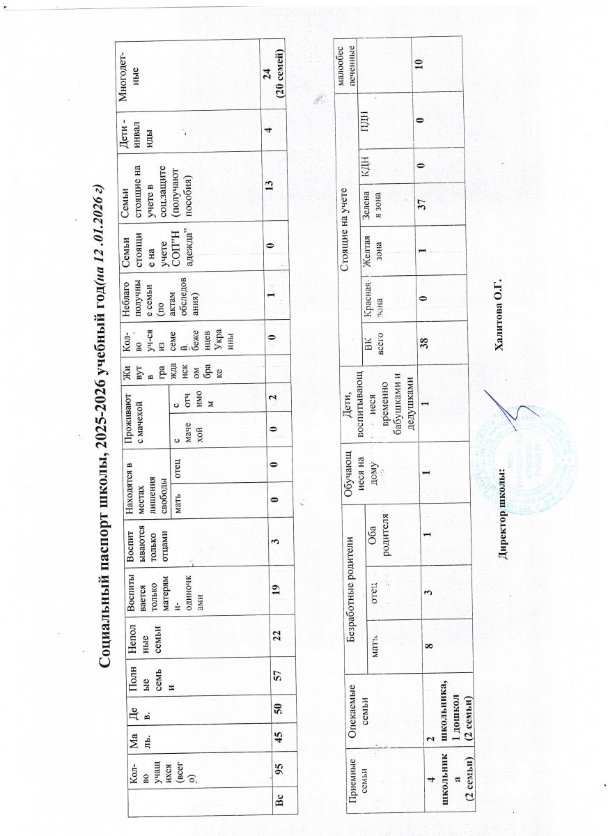 Социальный паспорт школы в 2025-2026 учебном году
