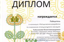 Диплом Победителя в номинации «Методические разработки по сохранению этнокультурного наследия» 11.03.2025