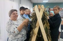 Юнармейцы Дома Юнармии при МБУ ДО ДДТ "Радуга талантов" на базе МБОУ Кадыбашская СОШ, под руководством Салиховой А.К., плетут сетку для СВО. 16.10.2025