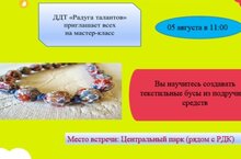 Сегодня сотрудники ДДТ "Радуга талантов" приглашают на волшебный мастер-класс по созданию текстильных бус в Центральный парк РДК 05.08.2025