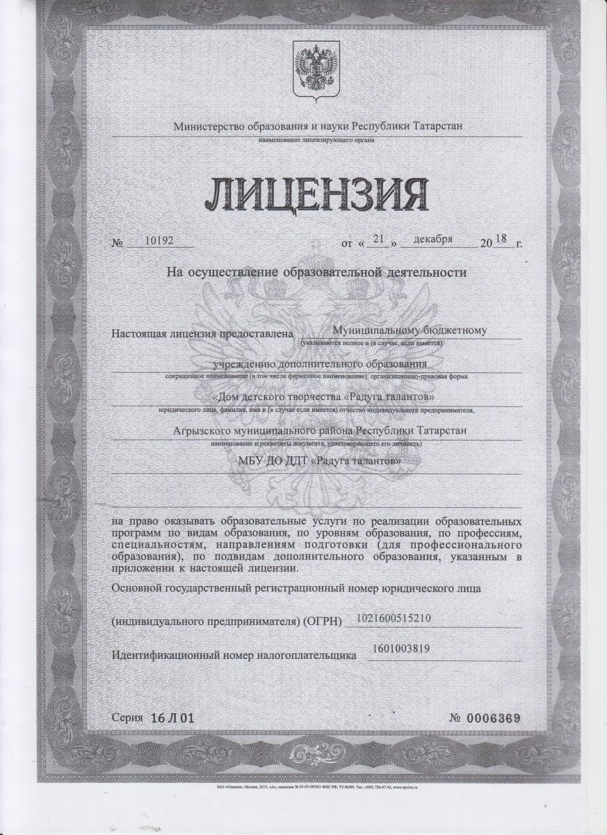 Лицензия на осуществление образовательной деятельности