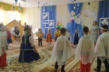 В нашем детском саду прошлая неделя была посвящена "Дню родного языка" С детьми провели национальные игры, организовали просмотр мультфильмов. Дети старших групп инсценировали сказки "Три дочери", "Храбрый утенок" на татарском языке.