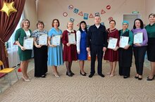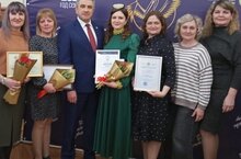 Вручение ценного приза от Центра Материнства и Детства за участие в конкурсе на лучшее оформление музыкального зала "Весеннее настроение"
