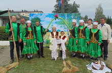 По центральной улице на трех площадках расположились экспозиции, подготовленные образовательными учреждениями района. Школы обратились к истории. Вот раненые в госпитале третьей школы. Школа №2 отмечает нынче свое 100-летие. Поразил жюри шикарный свадебный обряд сарсак-омгинцев.