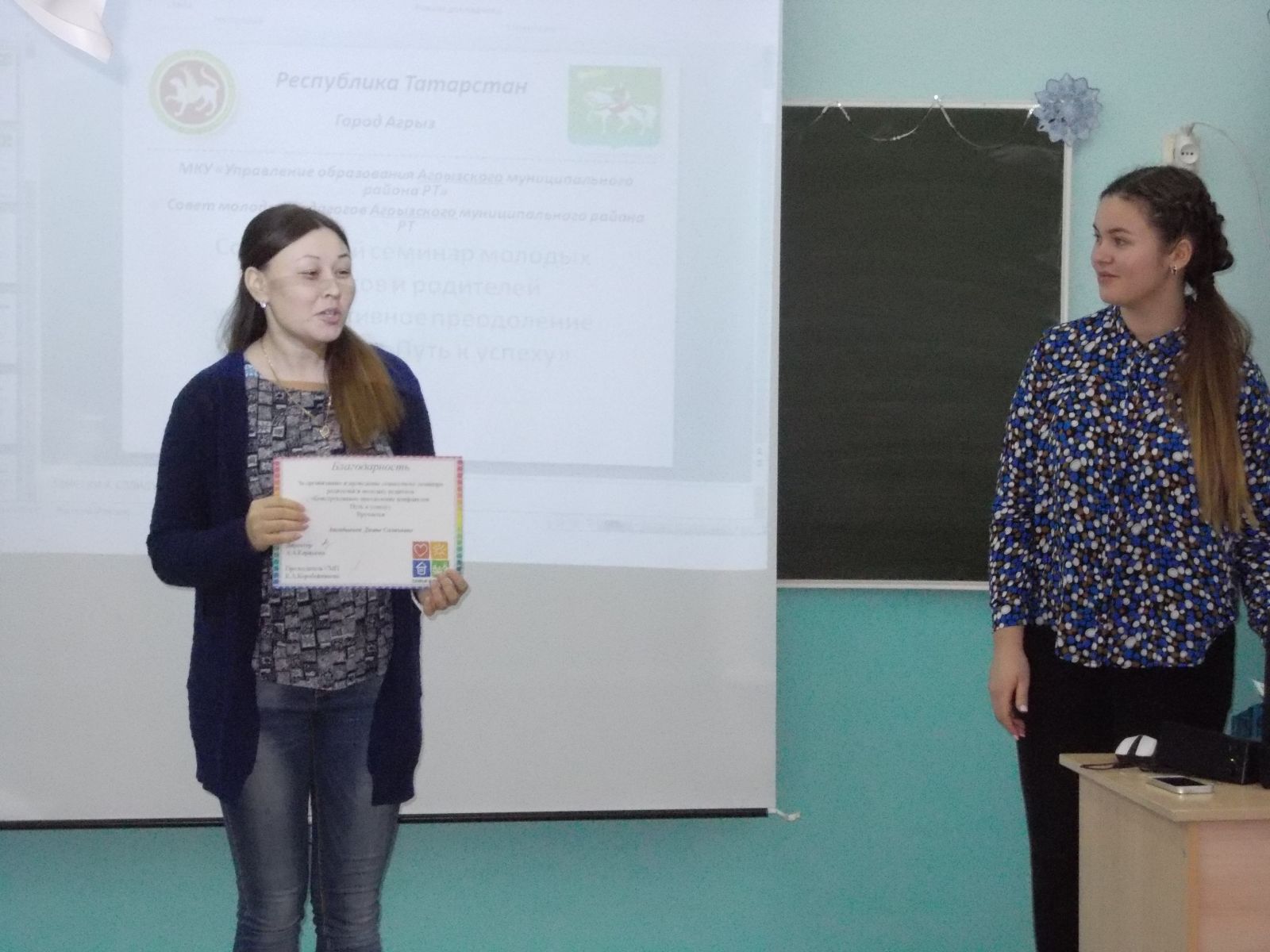 21 декабря 2017 года в школе №3 имени Т.Гиззата г. Агрыз был проведен семинар для молодых педагогов и родителей «Конструктивное преодоление конфликтов «Путь к успеху». Организаторы семинара: Ассоциация молодых педагогов Агрызского муниципального района РТ (руководитель Коробейникова К.А.), Центр психологической поддержки «Берег» (руководитель Шушакова Е.Н.), объединение «SамоSтоятельные родители»(руководитель Пономаренко Е. Были озвучены основные проблемы молодых педагогов в работе с трудными детьми. Пути их решения выявили сами участники в групповом обсуждении конфликтных ситуаций, просмотре видеоматериалов, дидактических играх. Благодарим всех участников семинара за продуктивную работу!