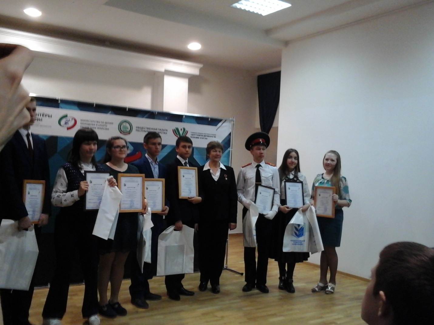 28 апреля в выставочном зале «Манеж» Казанского кремля чествовали победителей республиканского конкурса сочинений «Мы патриоты России», в котором приняли участие 125 учеников из 30 районов Татарстана. Учащиеся и учителя Хузина Валерия, 10б класс МБОУ СОШ №3 имени Т. Гиззата г. Агрыз (учитель Думчева Р.В.), Башарова Инзиля, 11 класс МБОУ Кичкетанская сош (учитель Нуретдинова А.М.), Исаева Александра, 9 класс МБОУ СОШ №4 г. Агрыз (учитель Ганеева Р.Р.) были приглашены как победители для награждения грамотами и ценными подарками. Общественная палата РТ, Реском профсоюза работников образования и науки РТ, инициаторы конкурса, устроили для участников незабываемое мероприятие: панорама – шоу, посещение музея антропологии, концерт деятелей культуры РТ. Дети и их руководители получили много впечатлений и новых эмоций.