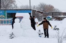 В преддверии Нового года на школьном дворе появились красивые, яркие фигуры из снега.