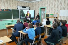 С помощью видеопрезентации ребятам организовали виртуальную экскурсию по главному памятнику защитникам Сталинграда - Мамаева кургану, а также заочное " посещение" музея - панорамы "Сталинградская битва".