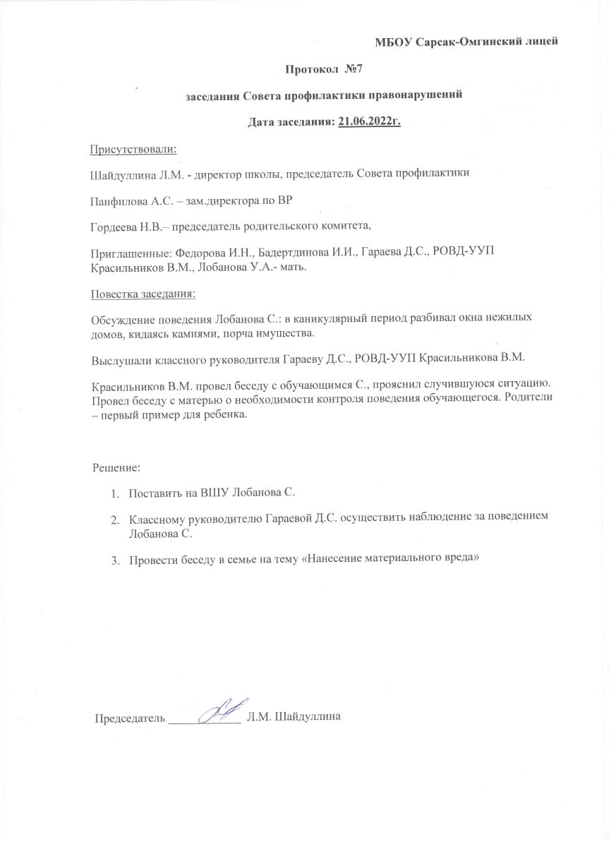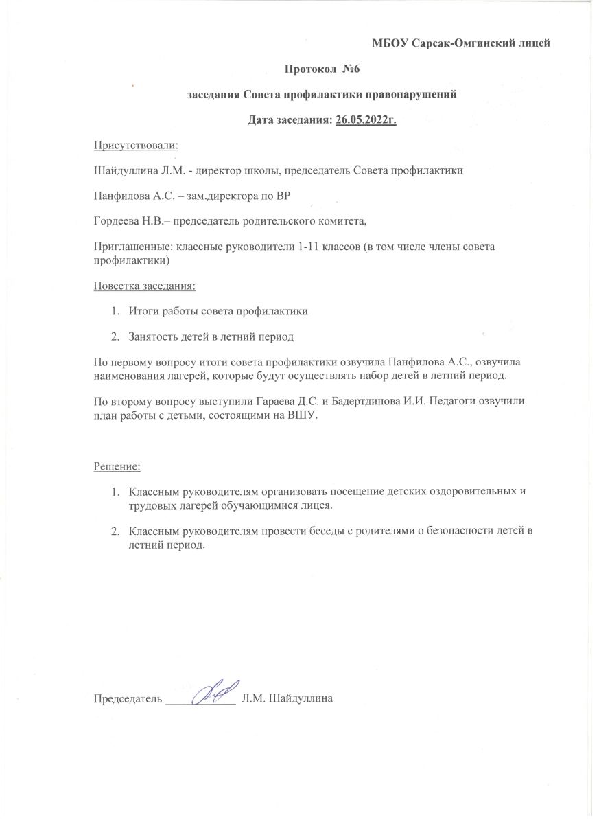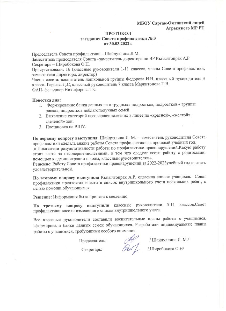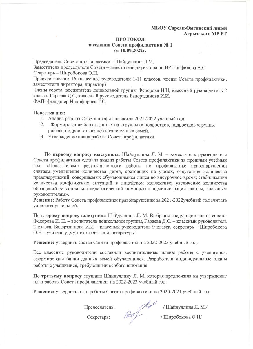Протоколы заседаний совета профилактики за 2022-2023 уч. год