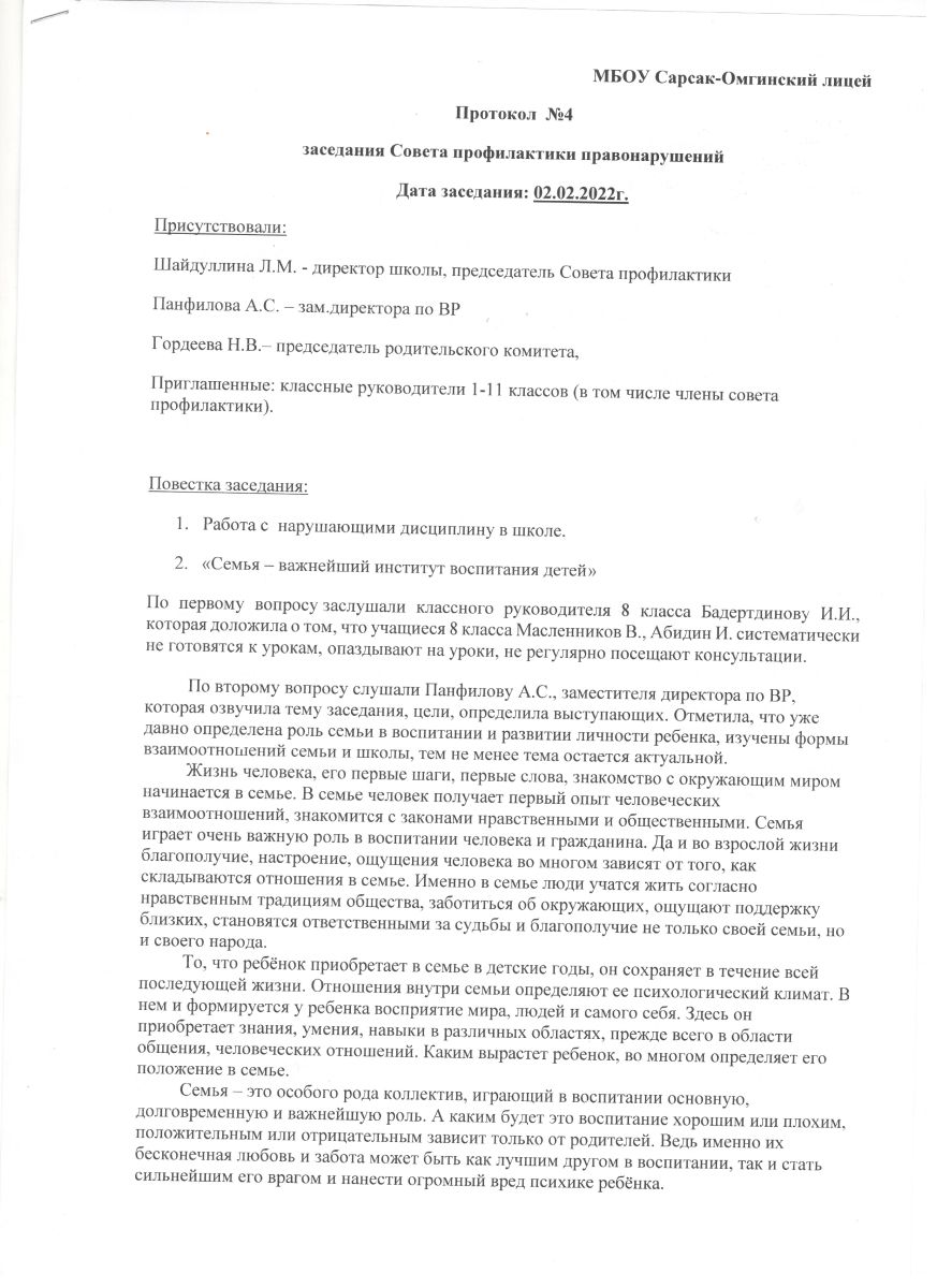 Протоколы заседаний Совета профилактики за 2023-2024 учебный год