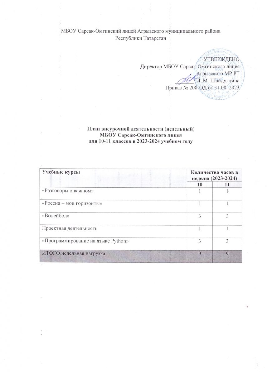 План внеурочной деятельности на уровень среднего общего образования на 2023-24 уч. г.