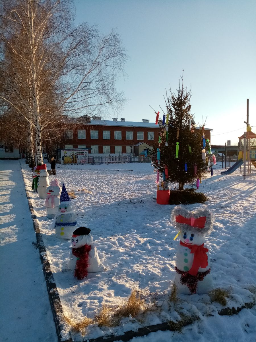 Яңа ел да якынлашып килә. Көтеп алынган бәйрәмгә әзерлек күптән башланды. Балалар Яңа ел уенчыклары,кәнфитләр ясыйлар, кар бөртекләре кисәләр, сыйныф бүлмәләрен бизиләр. Бу көннәрдә һәркем мәктәп алды территориясен бизәү белән мәшгуль. Кар юк диеп тормадык, җаен таптык. Капчыклардан Кар бабайлар ясадык. Киселгән бүрәнәләрдән күңелле гномнар барлыкка килде. Ак агач ботакларына җептән ясалган бик матур Кызылтүшләр урнаштылар. Мәйдан уртасына чыршы куеп, аны балалар ясаган төрле төсле кәнфитләр белән бизәдек. Әкият геройлары да урын алды. Киләсе елның символы булган Сыерга урын түрдән, әлбәттә. Үсеш ноктасы аллеясында үзенчәлекле тагын бер Чыршы пәйда булды. Бу "Яшь столяр" түгәрәгенә йөрүче балаларның тәүге эше. Мәктәп алды бәйрәм төсе алды.