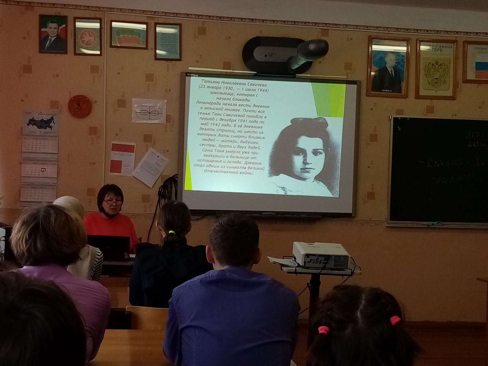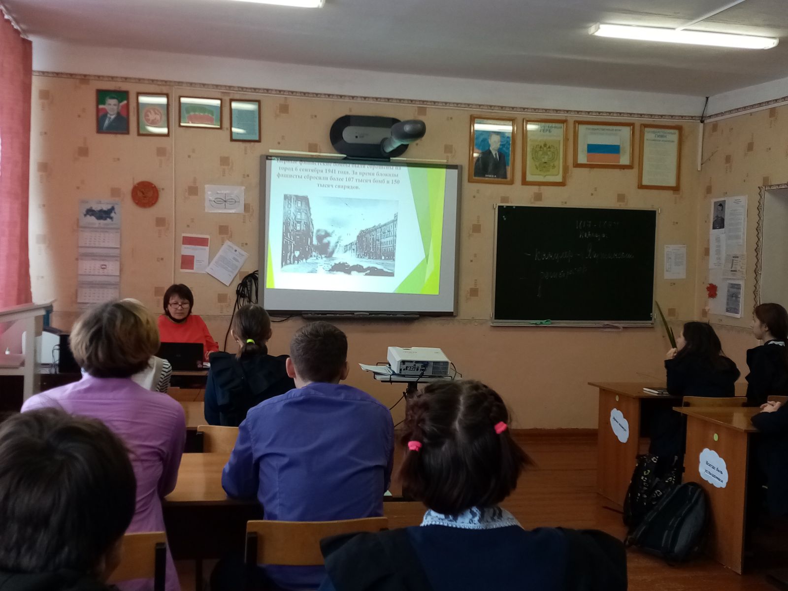 Бүген лицеебызда Ленинград Блокадасы өзелү көне уңаеннан Батырлык дәресләре узды. Алар 5-7 сыйныфлар һәм 8-10 нчы сыйныфлар өчен үткәрелде. Дәресләрне тарих һәм җәмгыять белеме укытучысы Тимофеева Р. В. әзерләде һәм үткәрде. Раиса Владимировна Бөек Ватан сугышының иң авыр чорларының берсе булган Лениград блокадасы чоры, ленинградлыларның шәһәрне саклап калу өчен батырларча көрәшүләре, Ладога күле аша узучы Тормыш юлы турында сөйләде. Сөйләмен презентация белән тулыландырды. Батырлык дәресләре тынлык минуты белән тәмамланды.