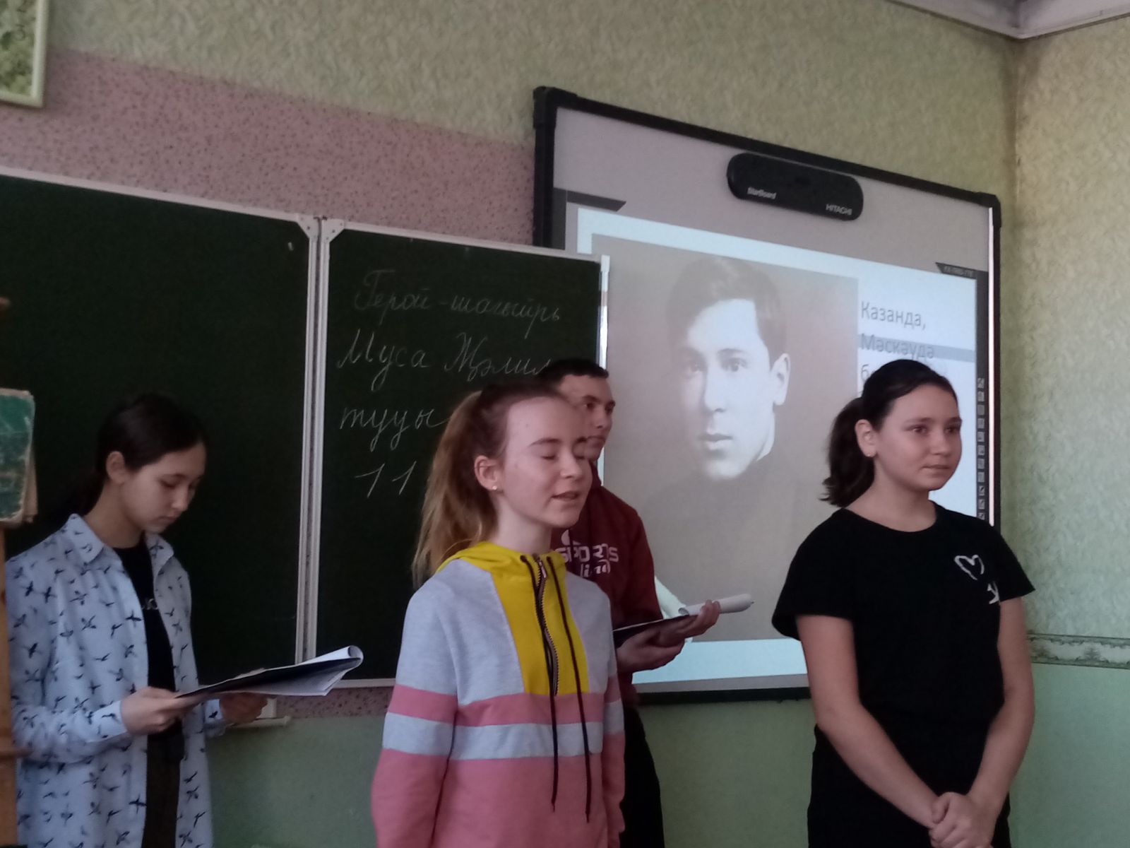 Опубликовано: 25.02.2021Лицейда каһарман-шагыйрь Муса Җәлилнең тууына 115 ел тулу уңаеннан әзерләнгән чара узды (кичә салкыннар булу сәбәпле кичектерелеп килде). Әдәби-музыкаль чарада 5-10 нчы сыйныф укучыларының татар һәм рус төркемнәрендә укучы балалар катнашты. Алып баручы укучыларыбыз Сабирова Алсу һәм Касыймов Руслан әдипнең тормыш юлы һәм иҗаты белән таныштырдылар. Кичә шагыйрьнең матур шигырьләре белән үрелеп барды. Аларны да укучылар башкарды. Саидә Мөхәммәтҗанованың "Җырларым" әсәренә төшерелгән клибын балалар бик яратып кабул иттеләр. Чара барышында күрсәтелгән презентациядә бик бай кызыклы мәгълүмат тупланган иде. Туган телләр һәм халыклар бердәмлеге елы уңаеннан уткәрелгән әлеге әдәби-музыкаль кичәне татар теле һәм әдәбияты укытучылары Сабирова Л. Г., Шәйдуллина Л. М., Терентьева Л. М. әзерләде.