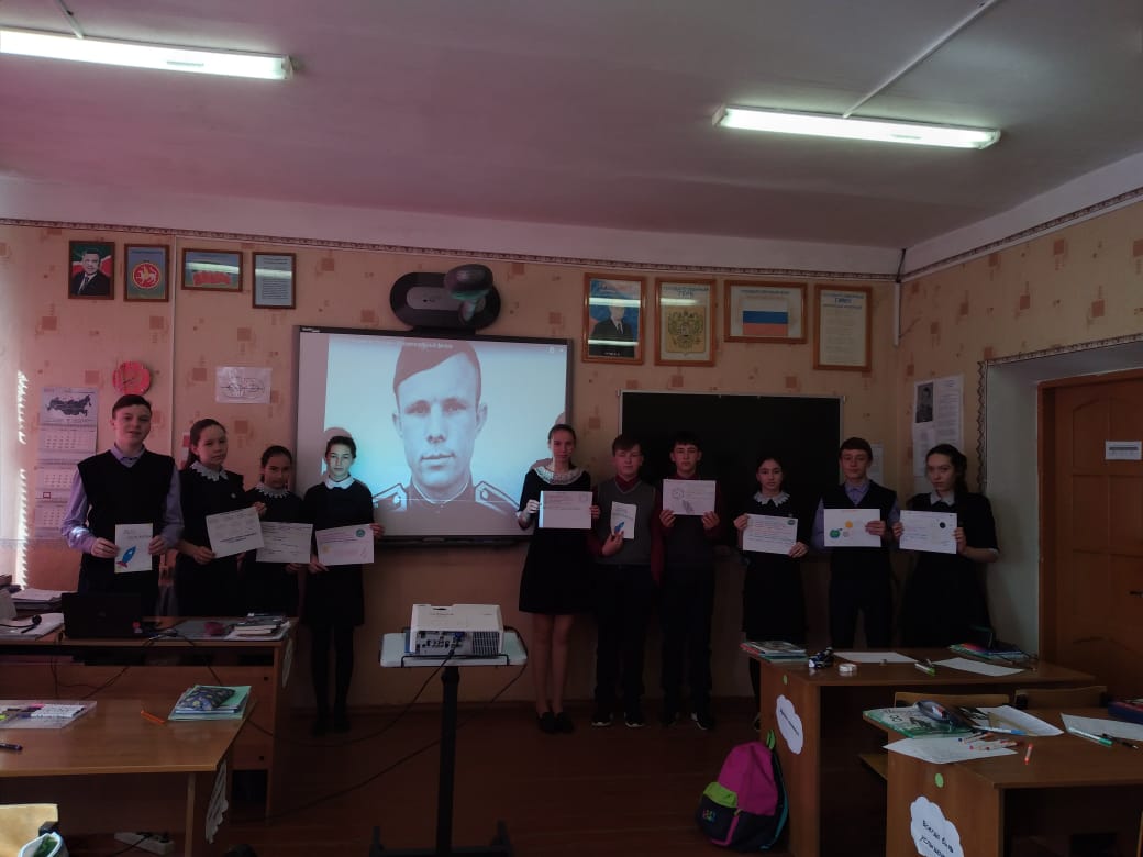8 класс (кл. рук. Тимофеева Р. В.) - классный час "Звезда по имени Гагарин". Рассмотрели краткую историю космоннавтики, по документальному фильму узнали интересные факты о жизни и деятельности Ю. А. Гагарина .