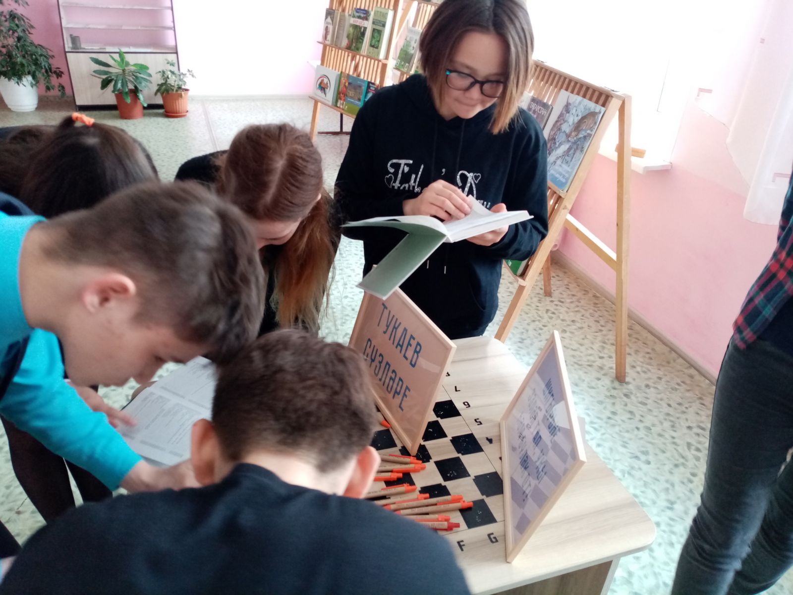 Проведенные внеклассные мероприятия сегодня были посвящены Тукаю. В проекте "Слова Тукая" приняли участие 5-10 классы.Строки, написанные на ручках, можно было найти в стихах и выиграть приз. Руководитель проекта Терентьева Люция Михайловна. Учащиеся 1 класса на библиотечном уроке читали сказки Г. Тукая, знакомились с его баснями. Педагог-библиотекарь Утехина Светлана Алексеевна подготовила выставку произведений поэта. Масштабное меропрятие "Библионочь" также открылось инсценированием произведения Г. Тукая. Воспитанники дошкольной группы Утехин Тимофей и Брюхова Анна рассказали наизусть стихотворение "Мотылек и ребенок".