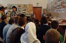 Чарага Ринатның әнисе Нәфисә апа да килде. Балаларга үзебезнең җирлектән МХО да булган егетләрнең фотолары күрсәтелде, алар белән таныштырылды. Шулай ук Әфган һәм Чечня бәрелешләрендә катнашкан егетләрнең дә фотолары күрсәтелде. Балалар шигырь сөйләделәр, Нәфисә апа улы Ринат турында истәлекләре белән бүлеште.