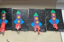 Прежде чем приступить к конструированию ракет, ребята рассмотрели иллюстрации о космосе, о планетах Солнечной системы, вспомнили о первом космонавте - Юре Гагарине. Ребята с удовольствием выполняли работу - складывали из бумаги ракеты, аккуратно и последовательно наклеивали детали аппликации. -