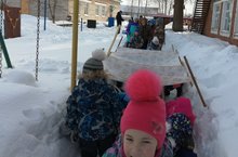 Буген безнең бакчабызда бик күңелле "Аҗаган" уены оештырылды. Бәйрәмдә әти-әниләр бик теләп катнаштылар. Төрле станцияләрдәге сынауларны бик төгәл башкарып чыктылар. Соңыннан барысы бергә "Солдат боткасыннан" һәм Май чабу бәйрәменең ашы, коймактан авыз иттеләр. Бәйрәм бик күңелле үтте.
