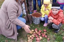 Балалар яз коне усемлеклэрнең усешен күзәтү максатыннан бәрәңге, чөгендер утырткан иделәр. Уңыш уңды. Бергә сөенешеп үзләре үстергән бәрәңгене казыдылар.
