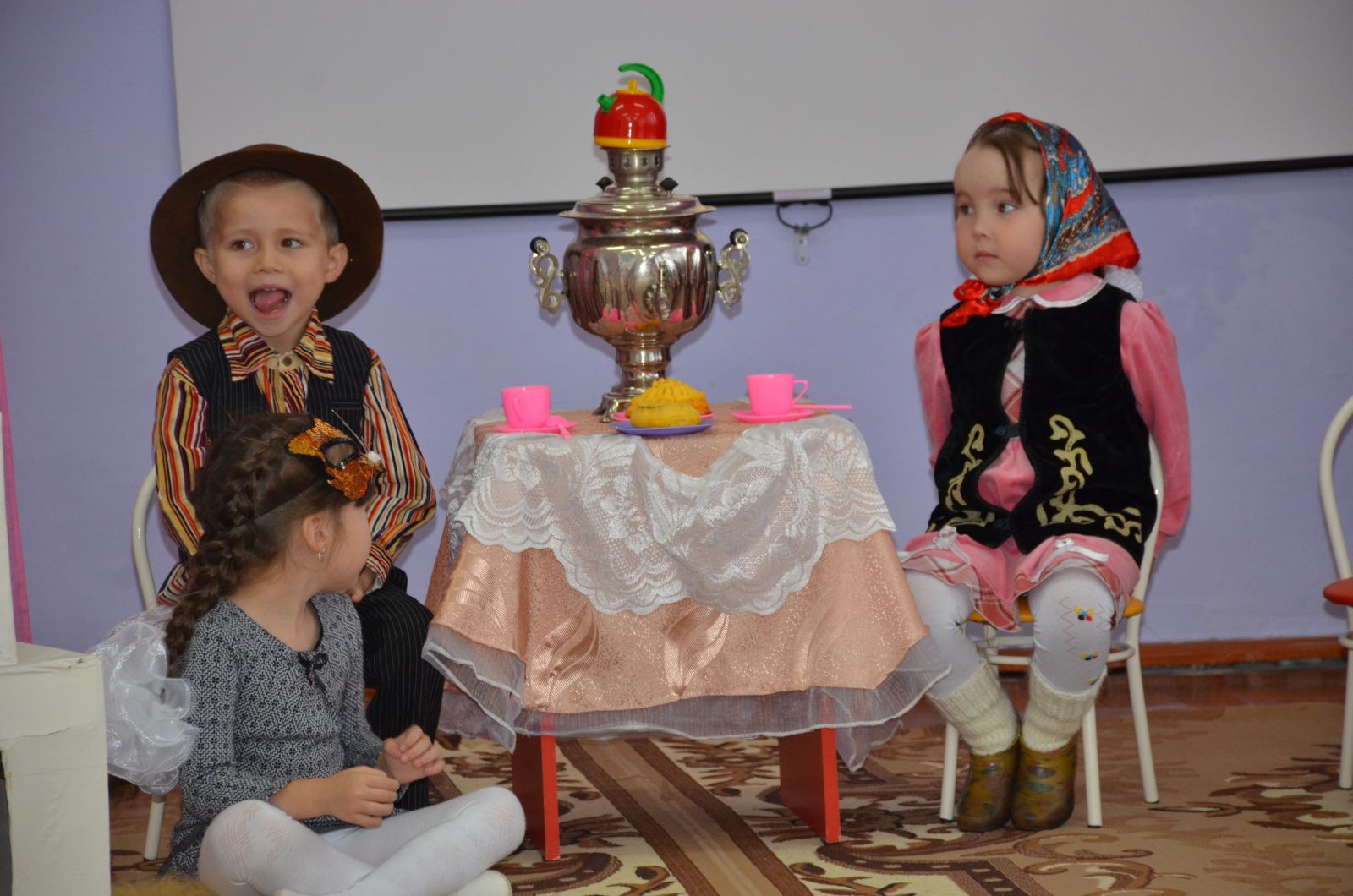 В целях реализации годового плана воспитательно-образовательной работы на 2016-2017 учебный год, а также для выявления качества планирования театрализованных игр и эффективности их органиации в соответствии с ФГОС с 21 ноября по 25 ноября в нашем ДОУ проводится неделя открытых просмотров ООД. Сегодня воспитатели посетили ООД по татарскому языку "Без театрда кунакта" в старшей группе.