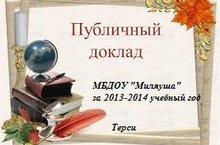 Сегодня в 18:00 в здании Терсинской средней школы заведующая ДОУ выступила публичным докладом за 2013-2014 учебный год