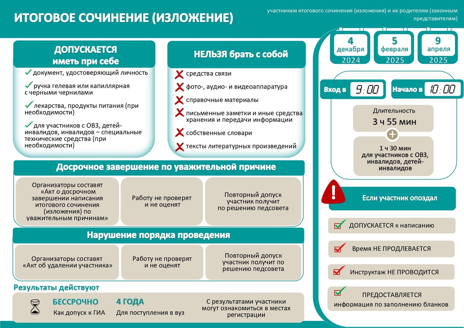Сроки подачи заявления для участия в итоговом сочинении (изложении) в 2024-2025 учебном году