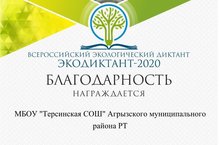 Наша школа участвовала приняла участие во Всероссийском экологическом диктанте, приуроченном к Всемирному дню вторичной переработки отходов (рециклинга) и награждена грамотой.