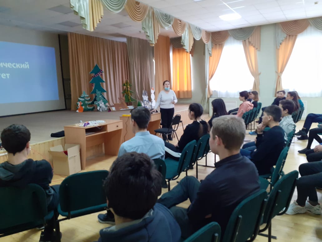 Для формирования эффективной системы выявления, поддержки и развития способностей и талантов у детей и молодежи, направленной на самоопределение и профессиональную ориентацию всех обучающихся организована совместная работа высших и образовательных организаций по вопросам профориентации учащихся. Сегодня в школе был представитель ЧОУ ВО «Казанский инновационный университет имени В.Г.Тимирясова (ИЭУП). Она показала учащимся 9, 11-х классов презентацию об учебном заведении, направлениях подготовки.