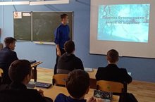 Все мы любим зиму за возможность поиграть в снежки и насладиться зимними видами спорта. Водоёмы покрываются льдом, и можно покататься на коньках или пойти на зимнюю рыбалку. Однако следует помнить о том, что лёд - очень опасная и хрупкая вещь. Прежде чем выходить на замёрзшую водную поверхность, необходимо ознакомиться с правилами поведения на льду, ведь выполнение элементарных мер предосторожности - залог вашей безопасности! На такую тему во всех классах прошли классные часы .