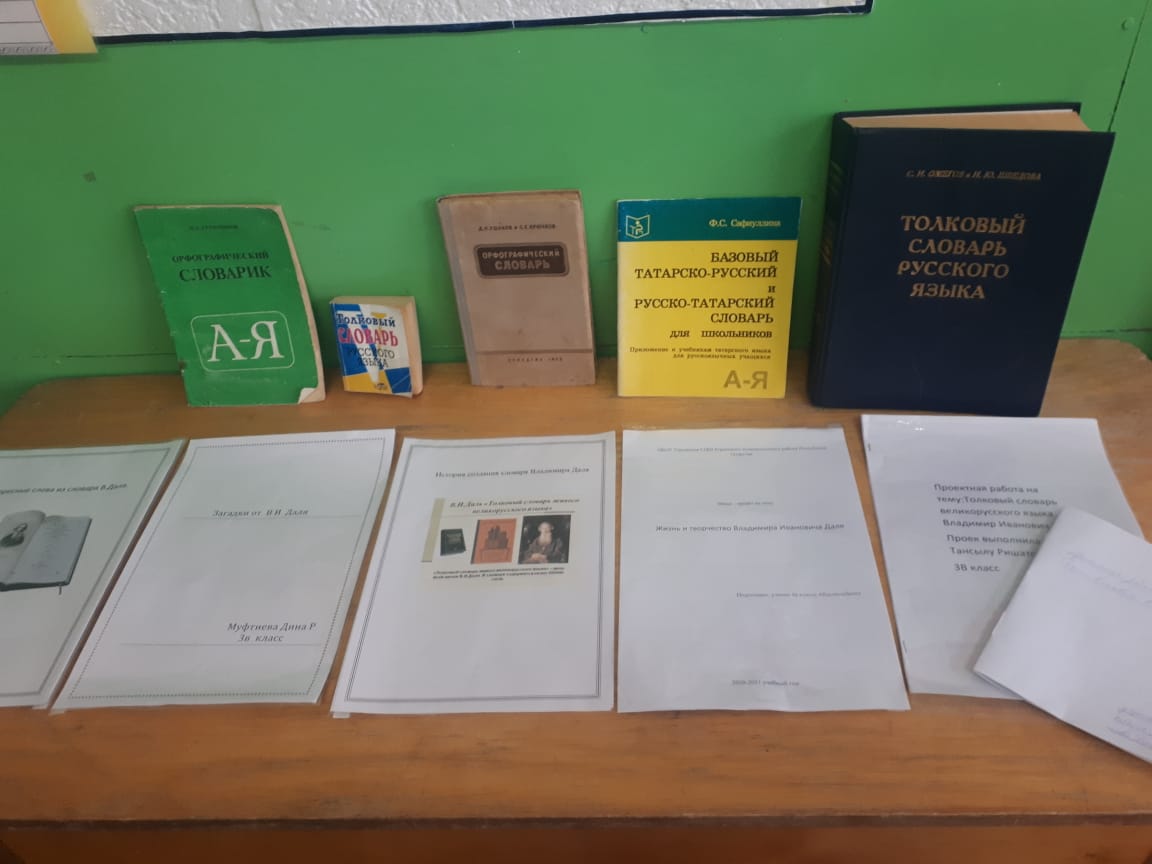 "Сүзлек көне" Бөтенроссия чарасын үткәрү кысаларында 2б,3в,4в сыйныф укучылары белән берничә чара үткәрделәр: укучыларның эшләре күргәзмәсе, минипроектлар, хәбәрләр тыңладылар, Владимир Дальга һәм сүзлекләрдән файдалану мәсьәләләренә багышланган буктрейлер булдырдылар.