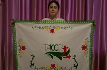 Работа Сибатовой Азалии, ученицы 3б класса, выполнена трафаретною росписью скатерти с помощью акриловых красок в честь 100-летия со дня рождения ТАССР. Сделанную скатерть подарила своей бабушке на день рождения. Работа Азалии выполнена очень аккуратно и качественно. Подарок замечательно будет смотреться у бабушки в гостиной.