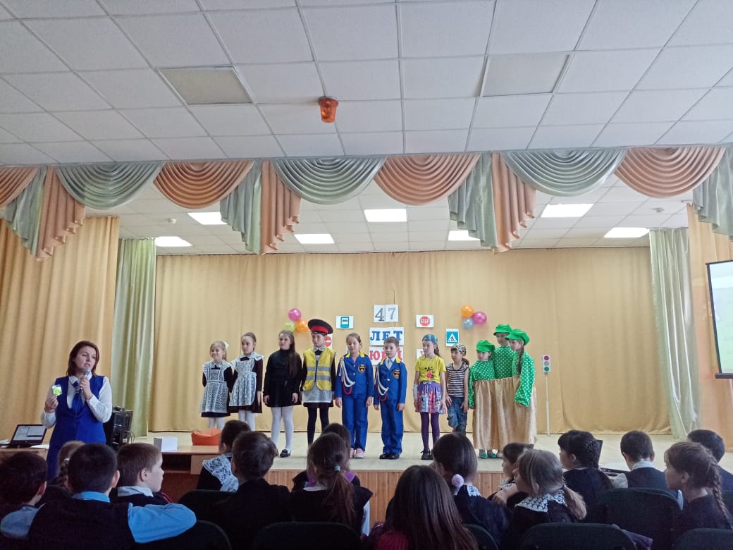 Бүген башлангыч сыйныф укучылары өчен чын бәйрәм оештырылды. Бүген Россиядә Яшь хәрәкәт инспекторлары отрядларының 47 еллыгы булды. Шул уңайдан безнең мәктәп укучылары "Светофория шәһәрендә маҗаралар" дигән темага чара әзерләделәр. Чарада һәр катнашучысының юл хәрәкәте кагыйдәләрен белү буенча викторинада катнашу мөмкинлеге бар иде. Раушания Васимовна Тимкина тагын бер кат балаларга юл кагыйдәләрен белү һәм үтәү мөһимлеге турында искә төшерде.