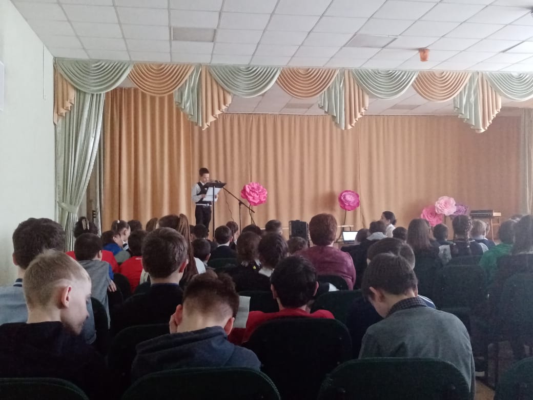 21 февраля в рамках декады русского языка и литературы ученицы 10 класса под руководством учителя русского языка и литературы Мусиной Л. З. представили литературно-музыкальную композицию «Юность, опалённая войной», посвящённую 75-летию Великой Победы. Девушки в своей миниатюре трогательно рассказали о судьбах совсем молодых девчонок, ушедших на фронт со школьной скамьи, о девчонках-медсёстрах, санитарках, спасавших на полях сражений жизни раненых солдат, связистках, разведчицах.
