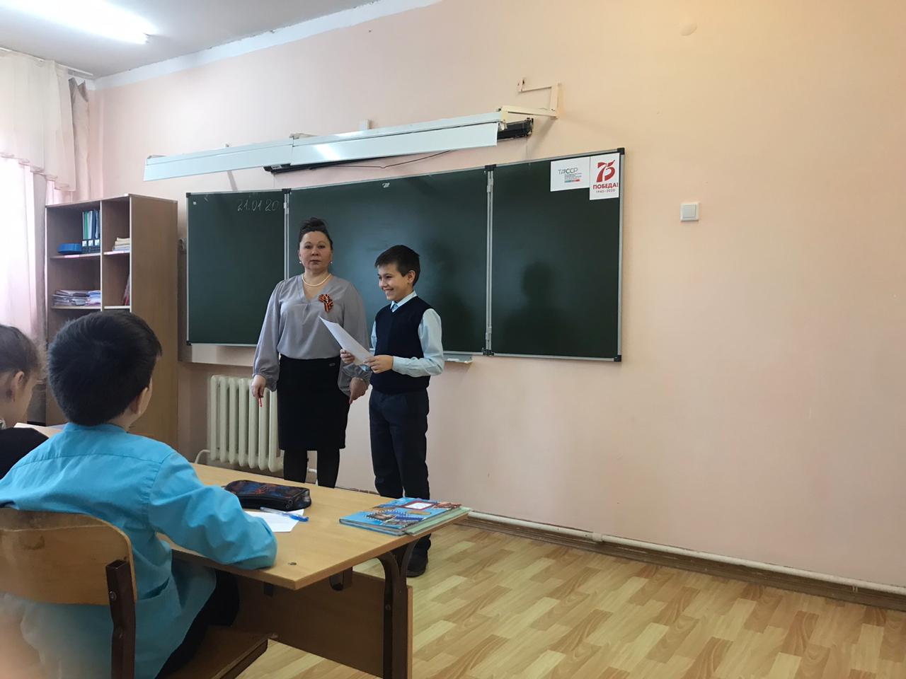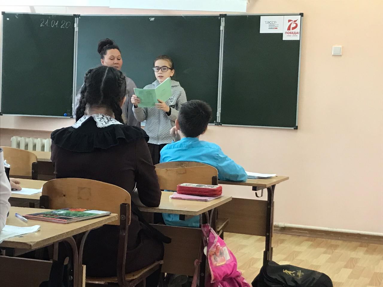 Бүген 5 А сыйныф укучылары ТАССР язучылары һәм шагыйрьләре, Бөек Ватан сугышында катнашучылар турында мәгълүмат бирделәр. Балаларның чыгышлары Муса Җәлил, Абдулла Алиш, Зәки Нури, Мирсәй Әмир, Гадел Кутуй турында иде. Проект нәтиҗәләре буенча электрон һәм кәгазь папка төзеләчәк. Укучылар проект өстендә эшләүгә иҗади якын килделәр. Алар фронтовик-шагыйрьләрнең шигырьләрен укыдылар һәм прозадан өзекләр укыдылар.