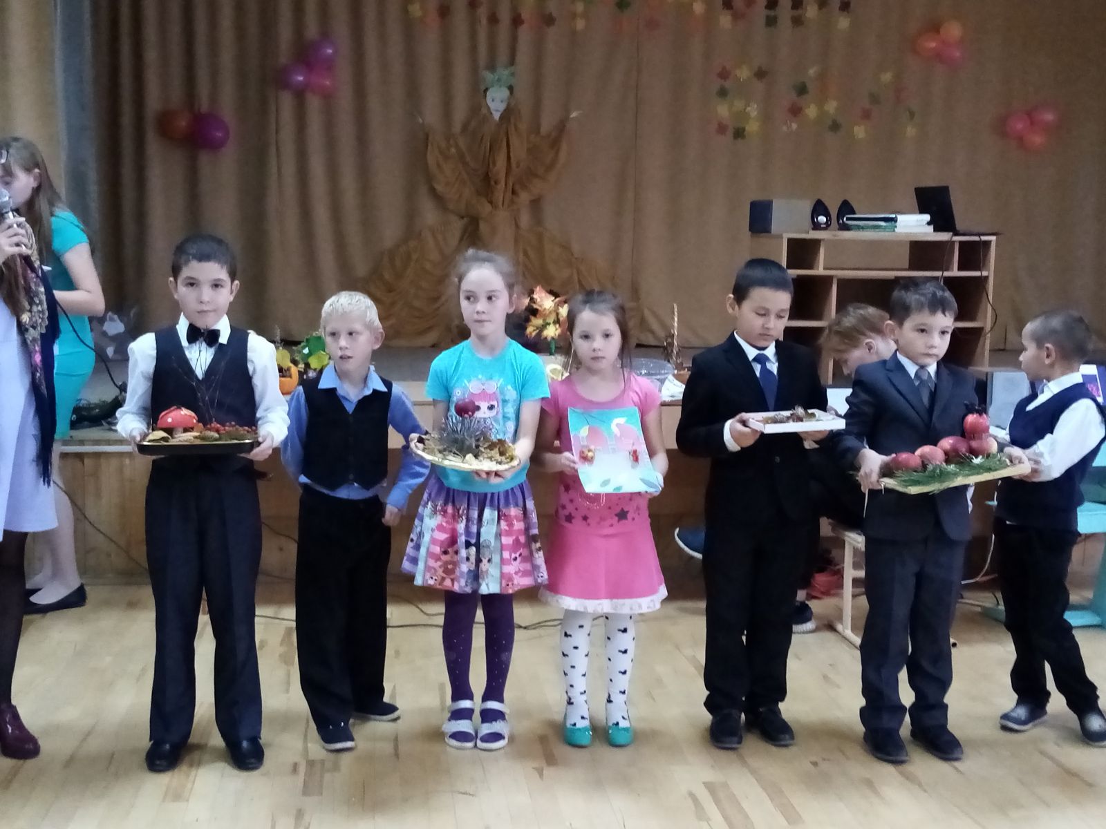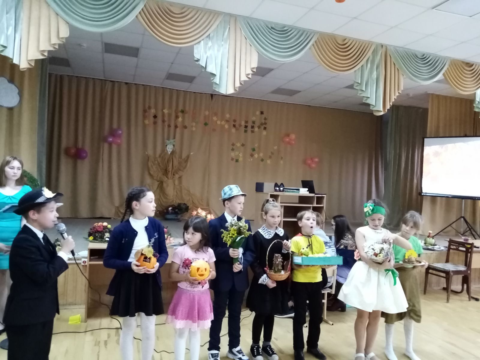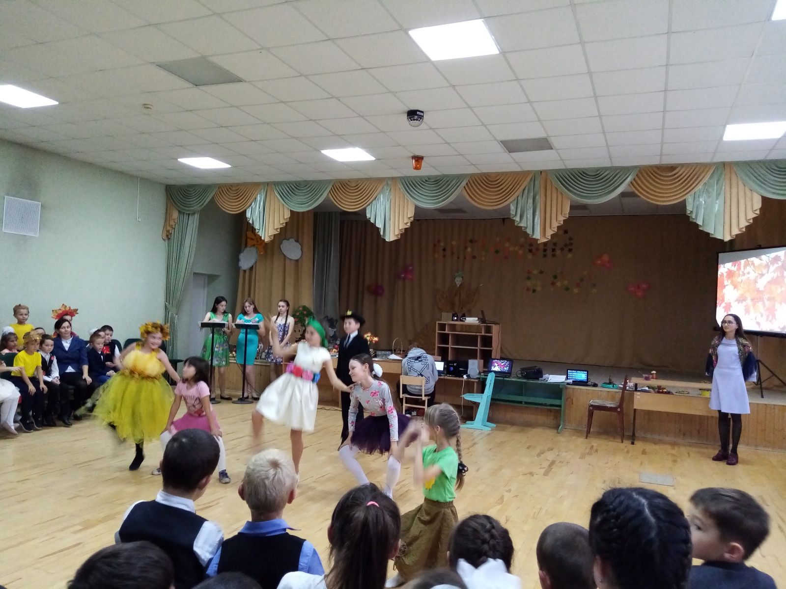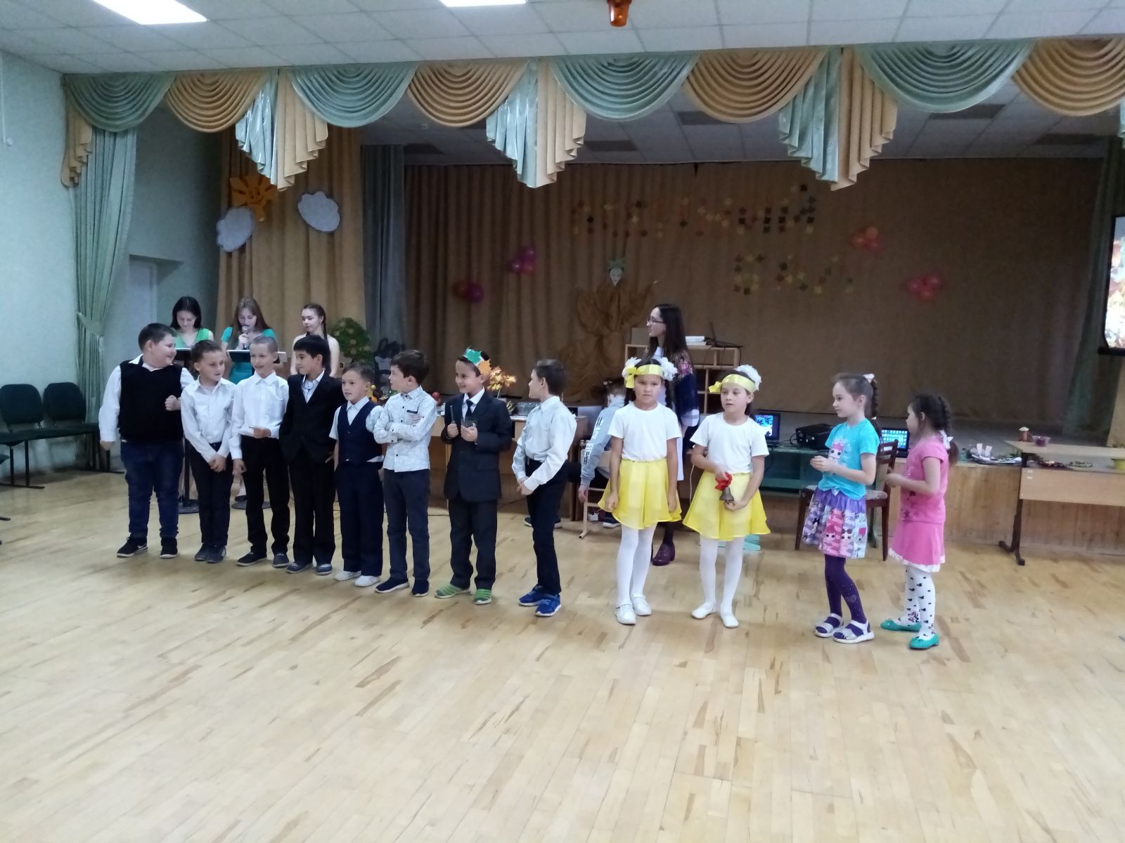 15 октября в актовом зале прошел Праздник осени среди учащихся начальных классов. На празднике учащиеся смогли участвовать в различных играх. Каждый из классов достойно продемонстрировали свои танцевальные и музыкальные номера, в которых дети узнали о пользе овощей и фруктов, о том, какие в них содержатся витамины. Учащиеся также показали поделки, выполненные своими руками из природного материала. В перерывах между выступлениями классов была организована танцевальная программа "Just Dance", которая пришлась по душе каждому из танцующих. Праздник оказался не только интересным, но и полезным.