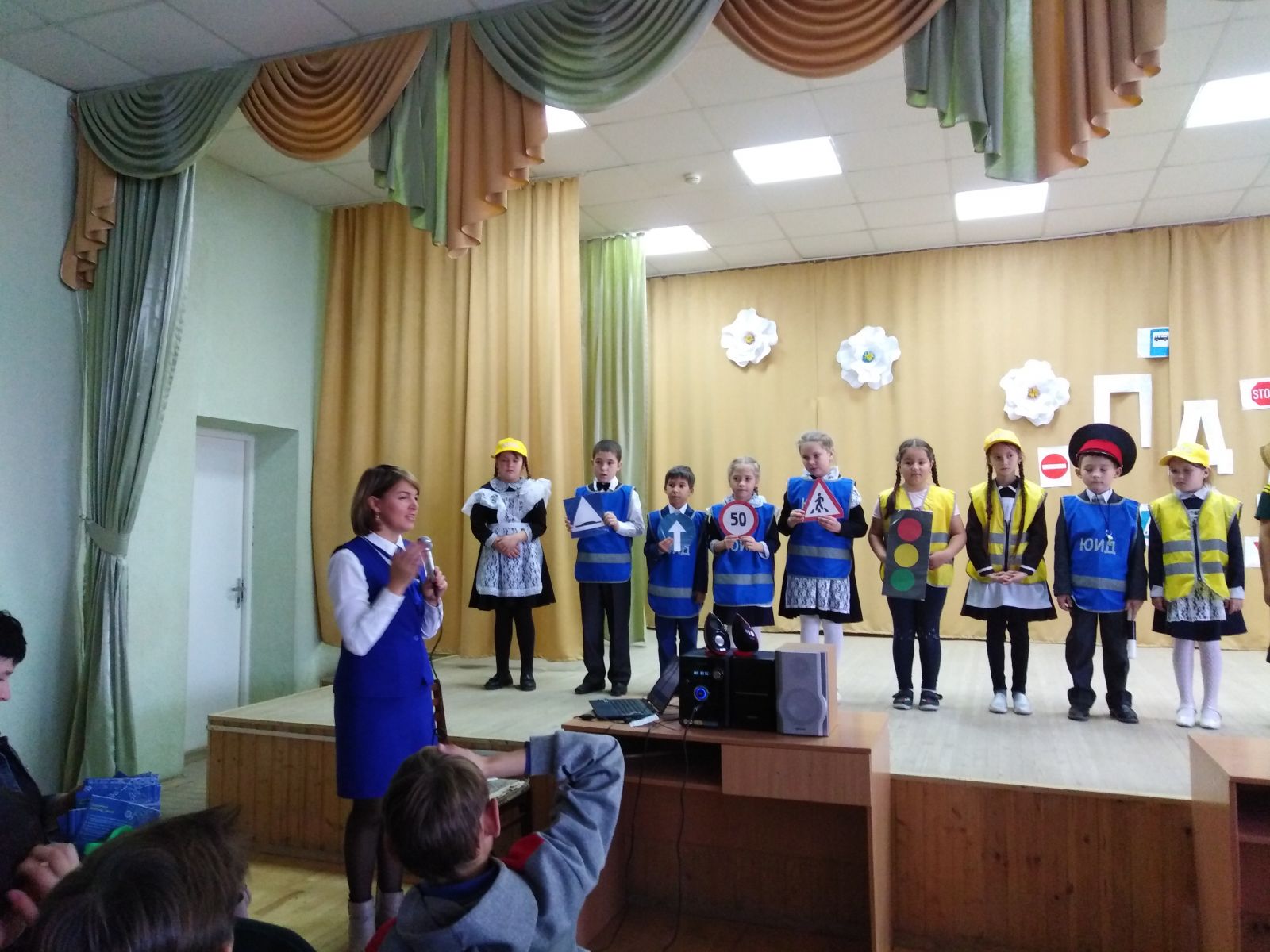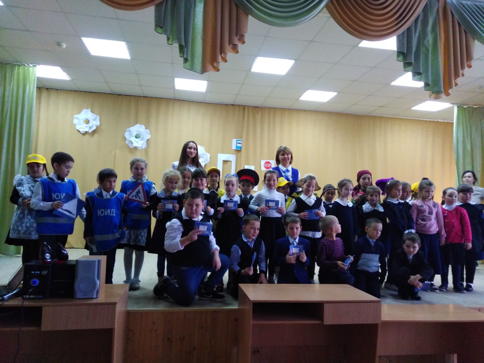 Сегодня в актовом зале среди учащихся начальных классов состоялось мероприятие на тему "Посвящение в пешеходы". Праздник был организован учащимися 2-х классов, входящих в состав отряда "Юные инспектора движения". Под руководством руководителя отряда "ЮИД", Сибатовой Лилии Флуровны, учащиеся 1-х классов дали клятву пешеходов. Раушания Васимовна Тимкина сказала напутственные слова и вручила подарки. Целью данного мероприятия было актуализировать знания школьников о правилах дорожного движения, а также посвящение первоклассников в пешеходы.