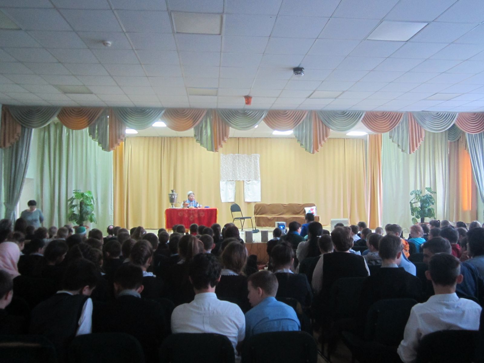А 12 апреля учащимися 7 А класса для учащихся 5-7 классов было представлено театрализованное представление «Кэриулла математика ойрэнэ, яки тискэре саннар», где ученики 7 А класса показали свои артистические способности. Мероприятие было очень интересное, зрители были довольны и активно принимали участие.