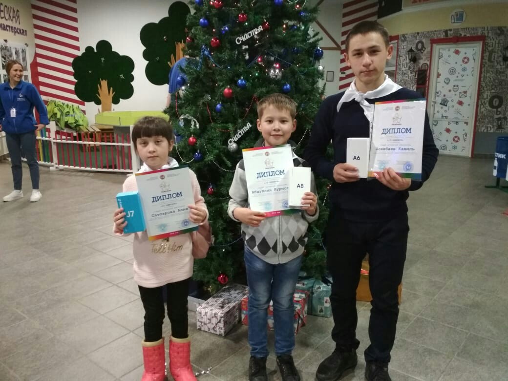 В Татарстане завершился первый этап конкурса среди школьников «IT-чемпион», организаторами которого являются Министерство информатизации и связи РТ и Министерство образования и науки РТ. На торжественную церемонию награждения, которая прошла в Казани 17 декабря, поехали наши ученики Абдуллин Нурслам, Асанбаев Камиль, Саттарова Алия, где их наградили смартфонами. Юные IT-чемпионы участвовали в мастер-классах в различных сферах, смотрели концертную программу. Участникам и их родителям вручили памятные дипломы и сувениры.