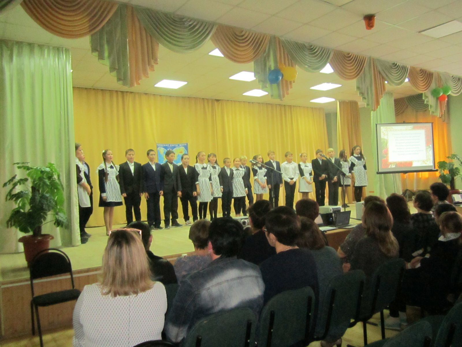 Бүген безнең мәктәбебездә зурлап Укытучылар көне бәйрәм ителде. Бәйрәмдә бөтен сыйныф укучылары актив катнашты. Укучылар һәм "Күңелле сәхнә" түгәрәге әгъзалары тарафыннан әзерләнгән концерт -тамаша мөгәллим күңелләренә хуш килде.