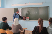 В рамках проведения торжественных мероприятий по случаю Дня защитника отечества в школе с учащимися 8-11 классов прошел урок "Мужество", посвященный знаменательной дате - дню образования Вооруженных Сил нашей страны. С этой целью был просмотрен фильм "Офицеры" . После просмотра было обсуждение фильма и ответы на вопросы учащихся.