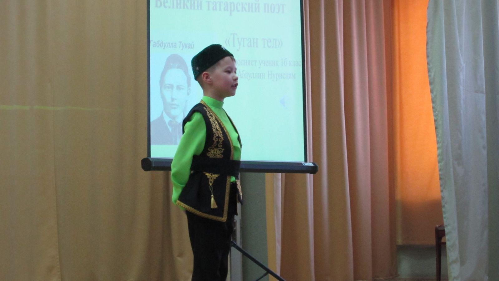 Халыкара туган тел көне уңаеннан мәктәптә башлангыч сыйныф укучылары арасында сәнгатьле уку бәйгесе оештырылды. Телнең барлыкка килүе турында башлангыч сыйныфлар укытучысы Гөлнур Фәрит кызы презентация тәкъдим итте. Бәйгедә һәр сыйныфтан өчәр укучы туган тел турында шигырьләр сөйләде. Бәйрәмдә татар, рус һәм мари телләрендә шигырьләр яңгырады. Алар арасыннан җиңүчеләр билгеләнде. Сәнгатьле сөйләүчеләргә дипломнар тапшырылды.