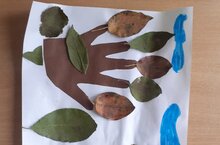 Көз үзенең буяулары белән сөендерә. Сары, кызгылт сары, коңгырт, иң гаҗәеп формалары һәм зурлыклары – көзге яфраклар иҗат өчен ясалган. Урамда йөргшндә балалар яфраклар җыйдылар һәм аппликация ясадылар.