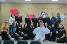 14 февраля в школе было организовано мероприятие –День Святого Валентина. Праздник проводился в красочном зале, украшенным разноцветными сердечками, танцующей вальс парой, купидоном со стрелой. Ведущие Закирова Рузиля и Насиров Эрик вели праздник на английском языке.