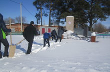 17 февраля учащиеся школы перед Днем Защитника Отечества очистили обелиск героям Отечественной войны от снега.