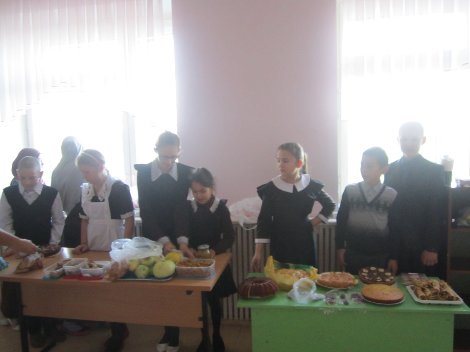 В подготовке столов «Дары осени» все классы активно приняли участие: и дети и родители, и бабушки. Богатейший выбор домашней кондитерской выпечки, фантазию при оформлении столов показали все участники продаж осенних товаров.